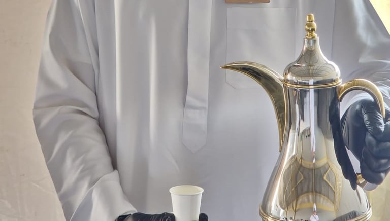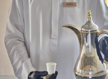 تشمل خدماتنا الضيافة العربية (قهوة، تمر، مشروبات)، مأكولات خفيفة مختارة، تنسيق ركن الضيافة بما يعكس هوية الحدث، وتوفير مضيفين محترفين مدرّبين على البروتوكولات المحلية والدولية.